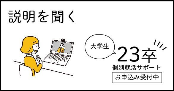 大学生23卒および24卒の方を対象とした個別説明および個別サポート募集を開始いたしました。就活個別サポートをご検討いただきます場合、